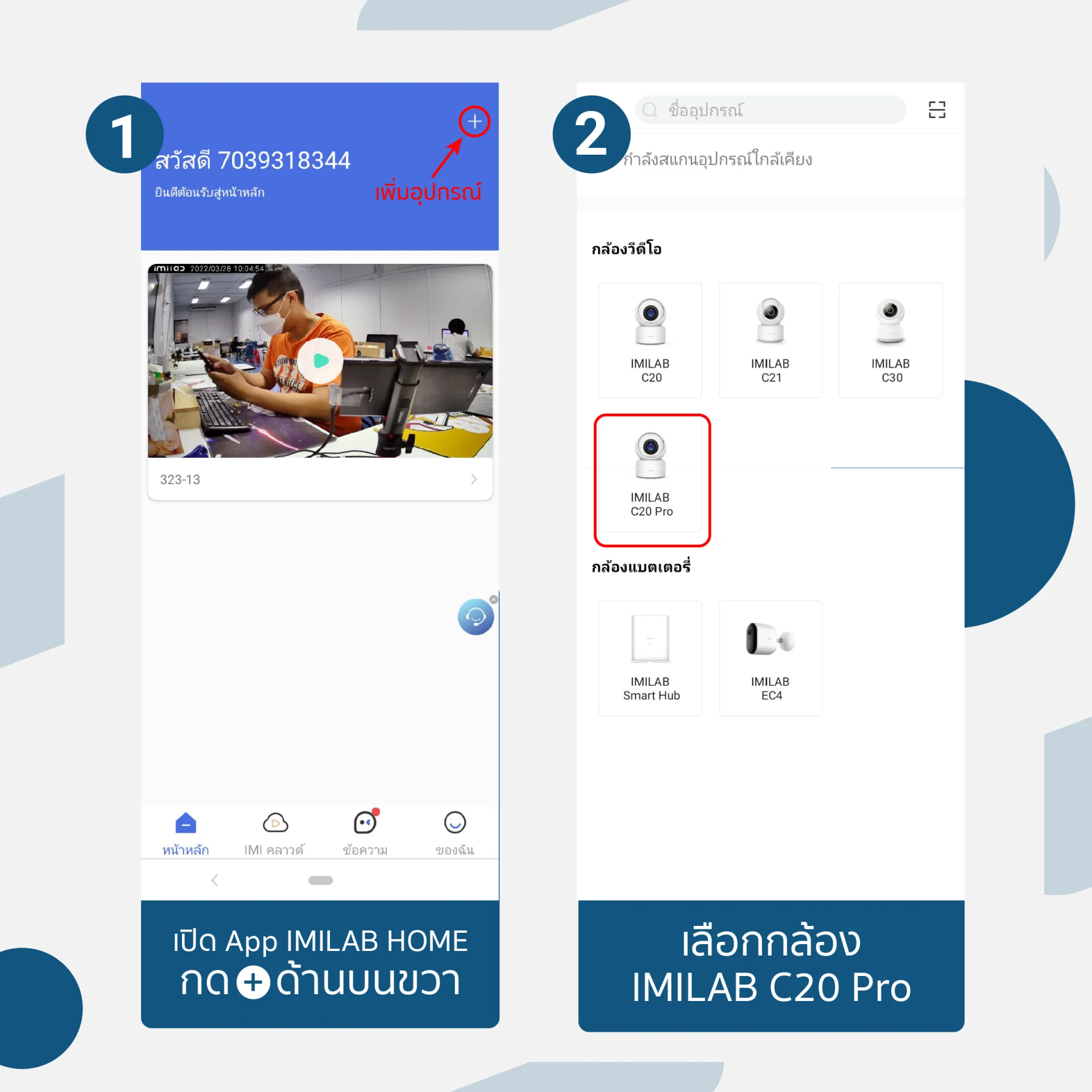 1.) เปิด App IMILAB Home กด + ด้านบนขวา