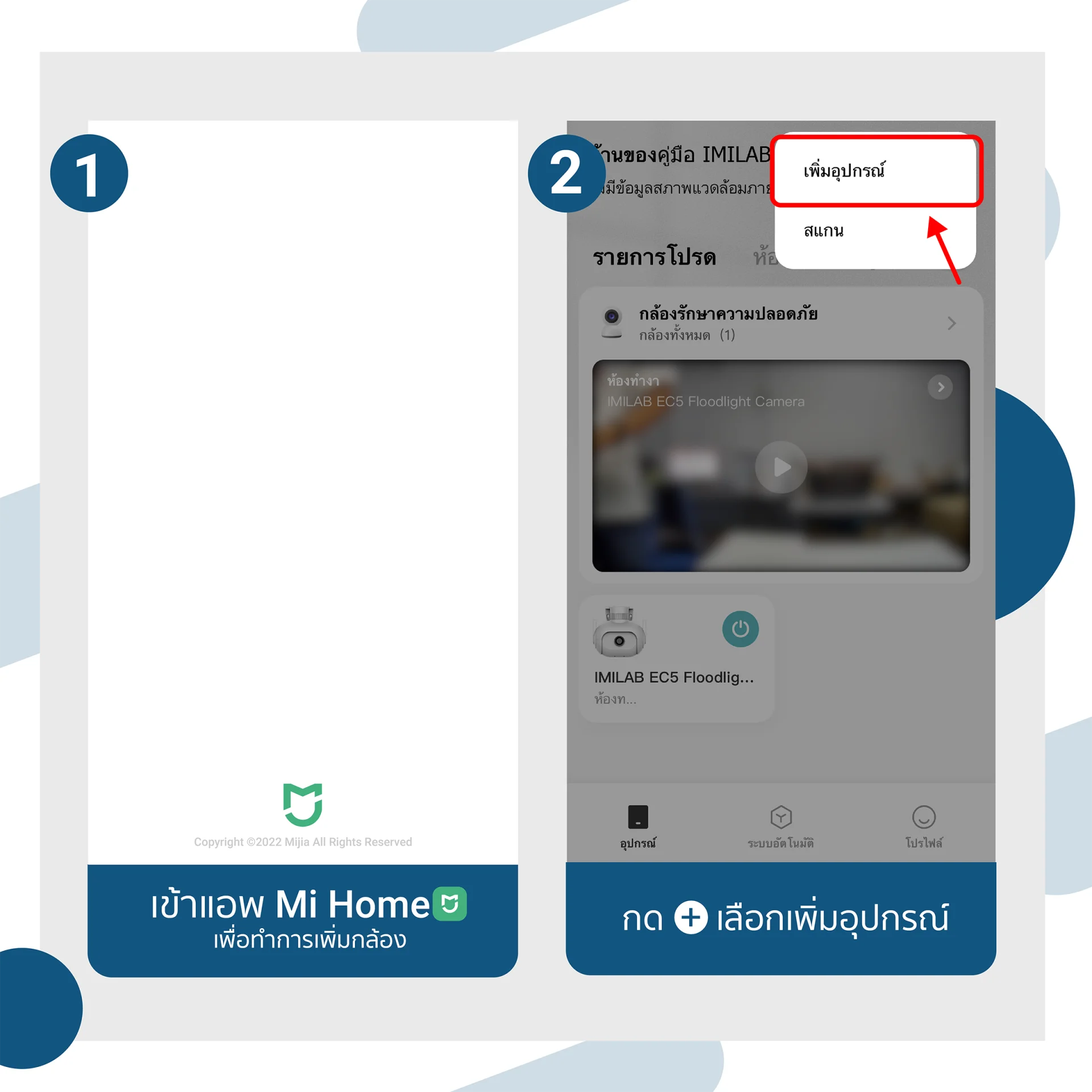 1.) เข้าแอพ Mi Home เพื่อทำการเพิ่มกล้อง