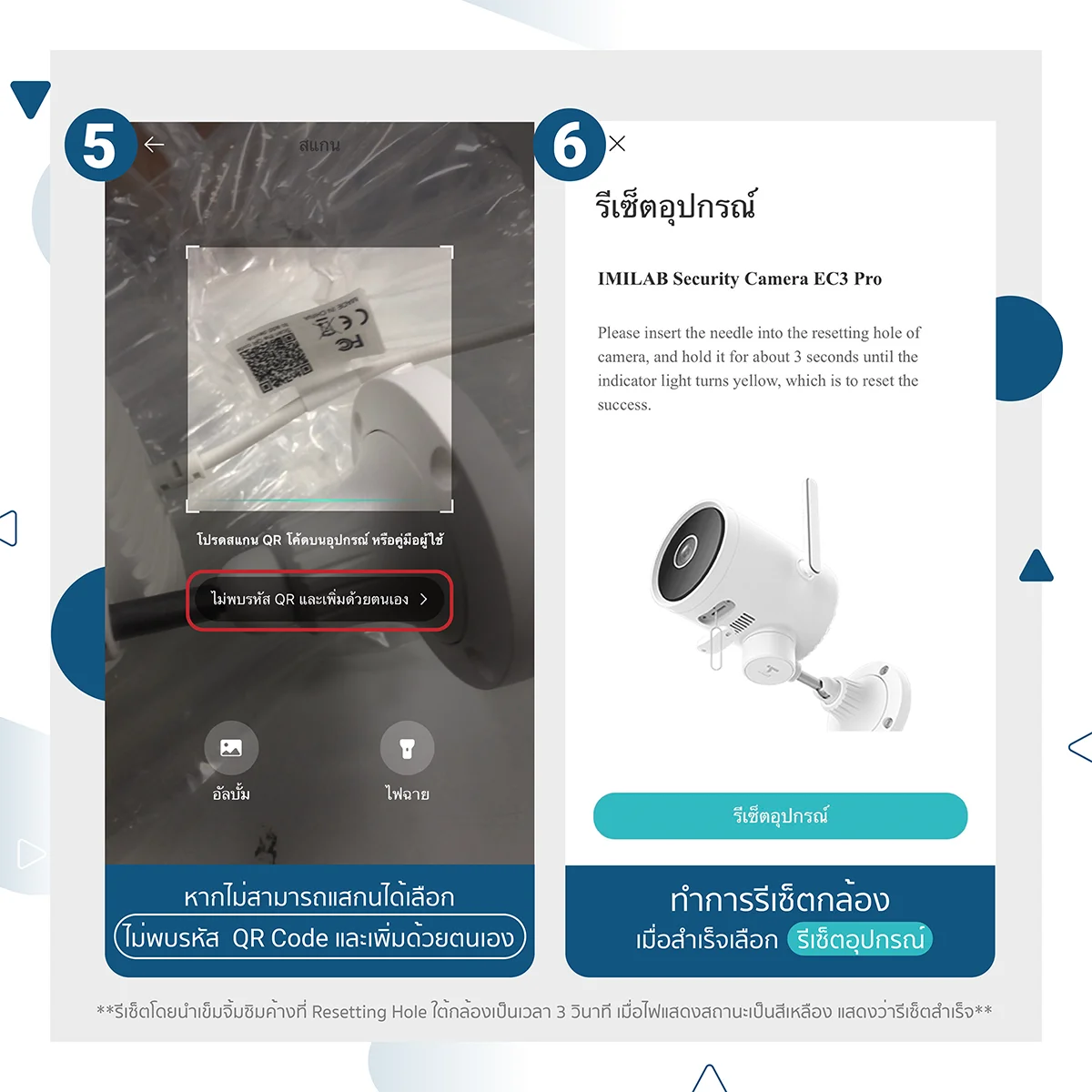6.) แอพพลิเคชันจะให้ทำการรีเซ็ตกล้องก่อนทำการเชื่อมต่อ
