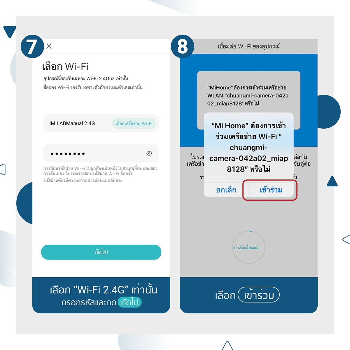 8.) เลือก "เข้าร่วม" เพื่อทำการยืนยันเข้าร่วมเครือข่ายของกล้อง