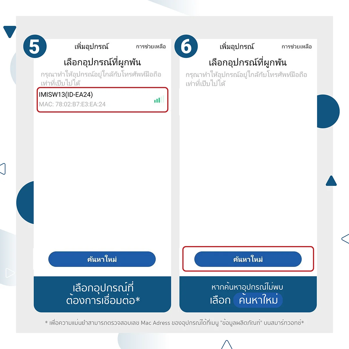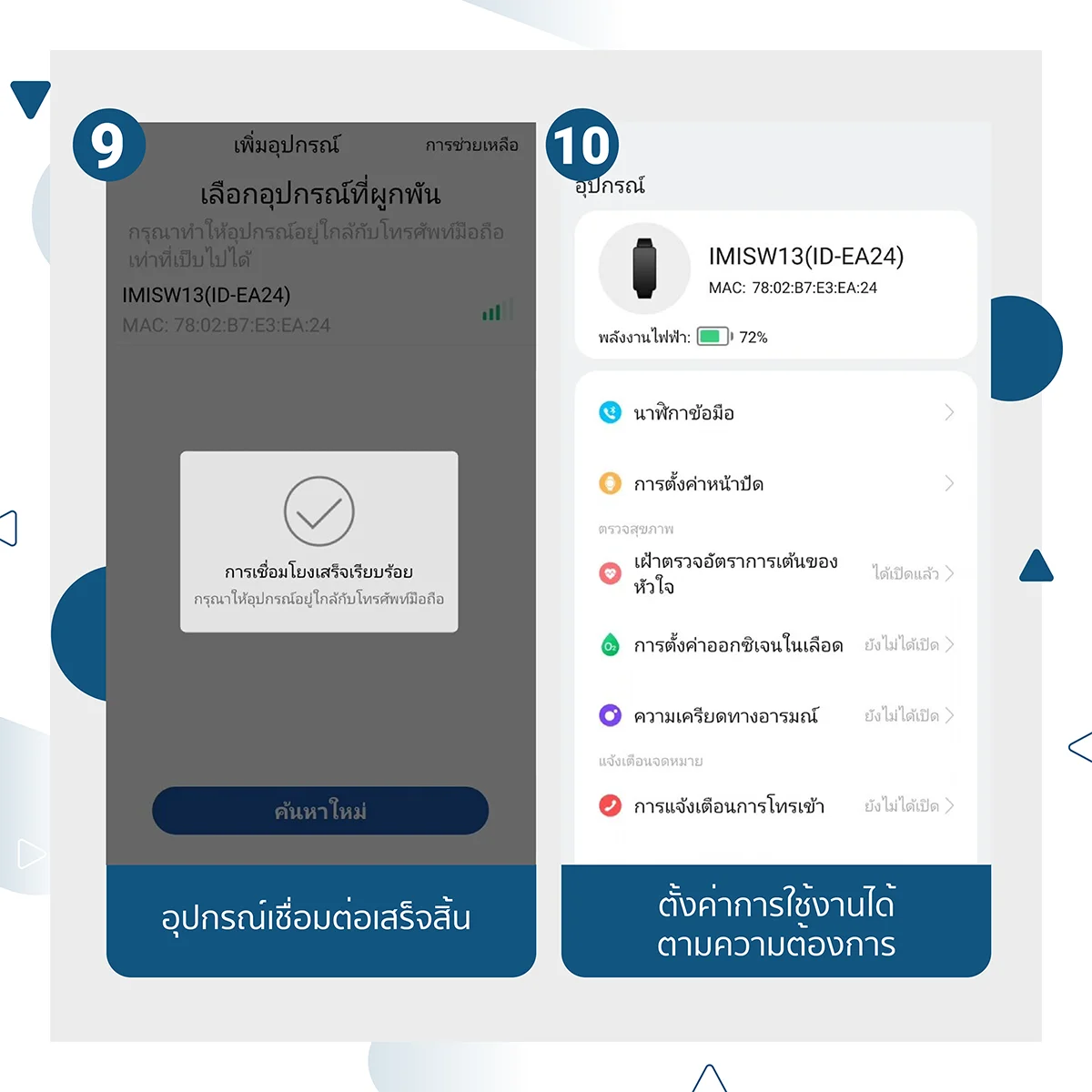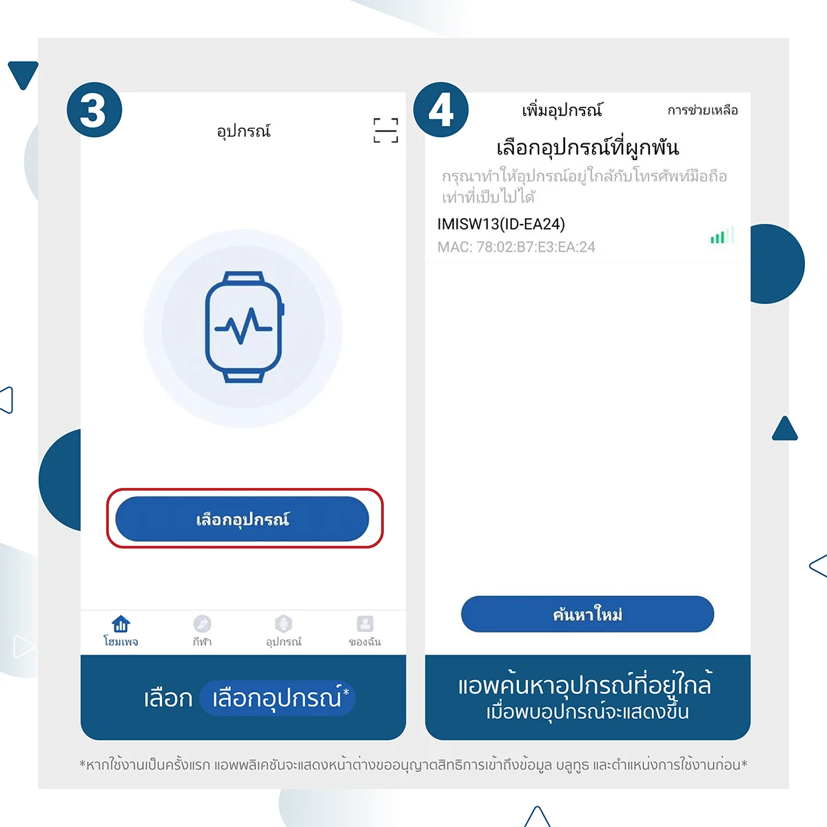 * เพื่อความแม่นยำในการเชื่อมต่อ สามารถตรวจสอบเลข Mac Adress ของอุปกรณ์ได้ที่เมนู "ข้อมูลผลิตภัณฑ์" บนสมาร์ทวอทช์*