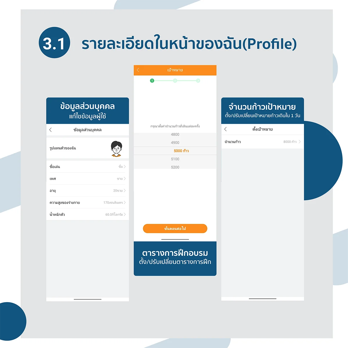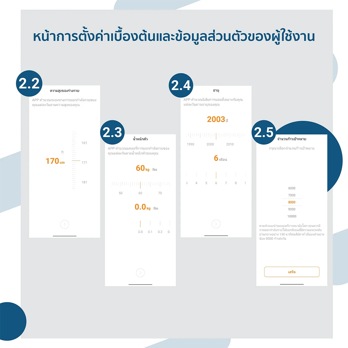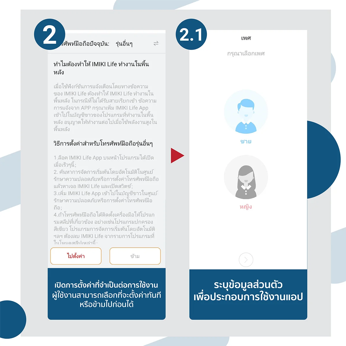 2.) เปิดการตั้งค่าที่จำเป็นต่อการใช้งานผู้ใช้งานสามารถเลือกที่จะตั้งค่าทันทีหรือข้ามไปก่อนได้ และระบุข้อมูลส่วนตัวเพื่อประกอบการใช้งานแอป