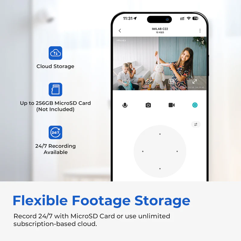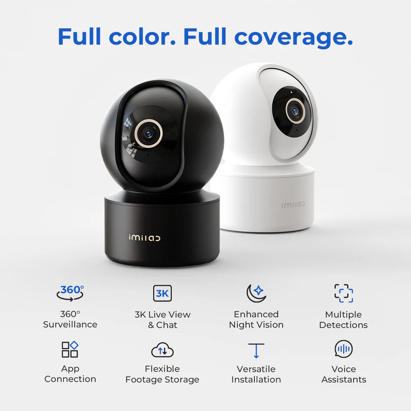 The IMILAB C22 offers 360° rotation for comprehensive indoor surveillance. With 3K resolution and two-way audio, it gets all the details recorded and allows you to connect to your home. It records colorful footage in low light and alerts you to people, motion, or noise, updating you on any situation.