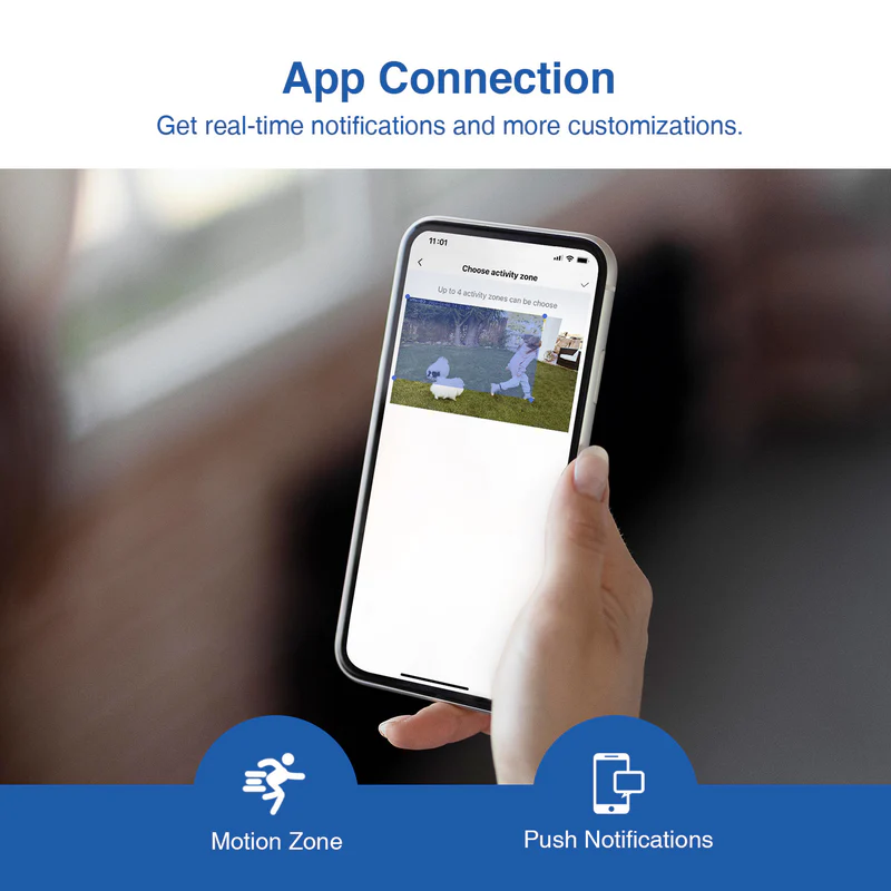 * Instantly sends alerts to your phone when motion is detected.