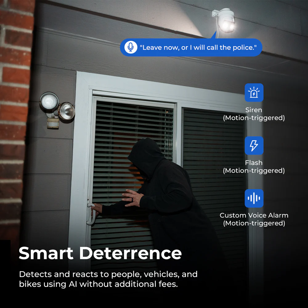 The IMILAB EC6 Panorama is an innovative rotatable dual-lens 3.5K spotlight camera with a 180° ultra-wide surveillance angle and the ability to rotate 344°. It smartly deters threats using siren, flash, or custom voice alarm upon detecting the motion of people, vehicles, and bikes. Get a clear view even at night with the smart color night vision. All of the advanced features are built-in without a monthly subscription.